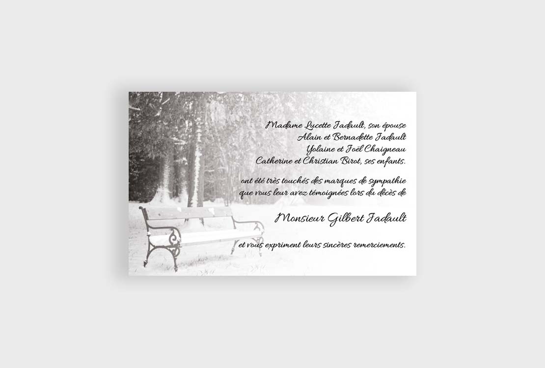 Banc enneigé désespérement vide… représentation de la disparition de l’être cher…