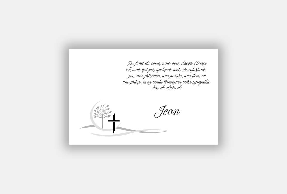 Cette carte de remerciements décès « Arbre et croix » est tout en sobriété.