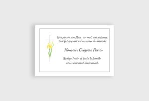 Cette carte de remerciements décès « iris jaune » met en valeur votre texte.