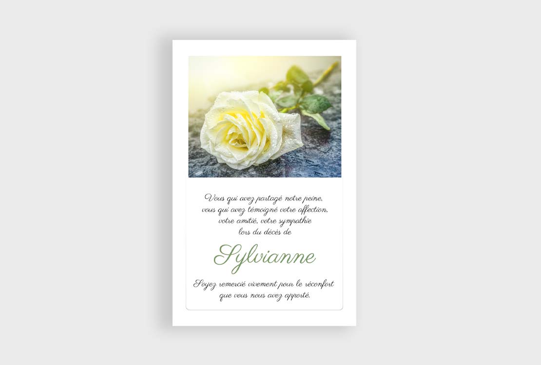 Cette carte de remerciements décès « Rose blanche » est délicate.