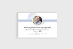 Tout en sobriété avec ses cercles bleus, votre entourage découvrira votre texte de remerciement dès l’ouverture de l’enveloppe.