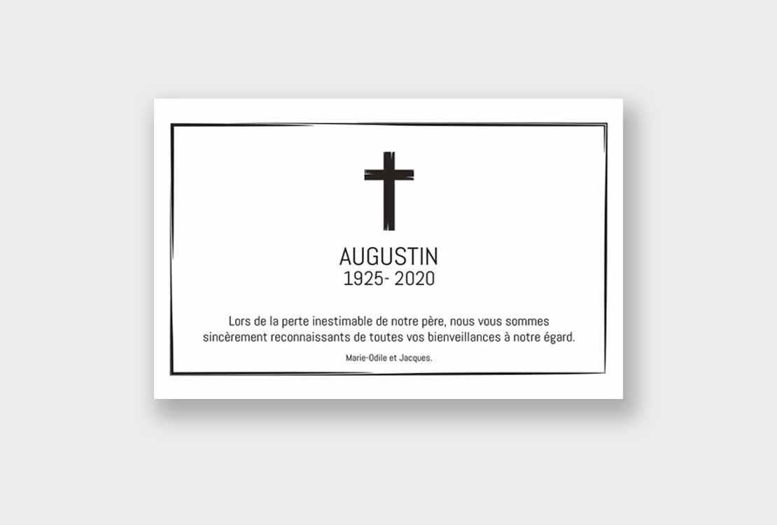 Cette carte de remerciement décès est épurée.