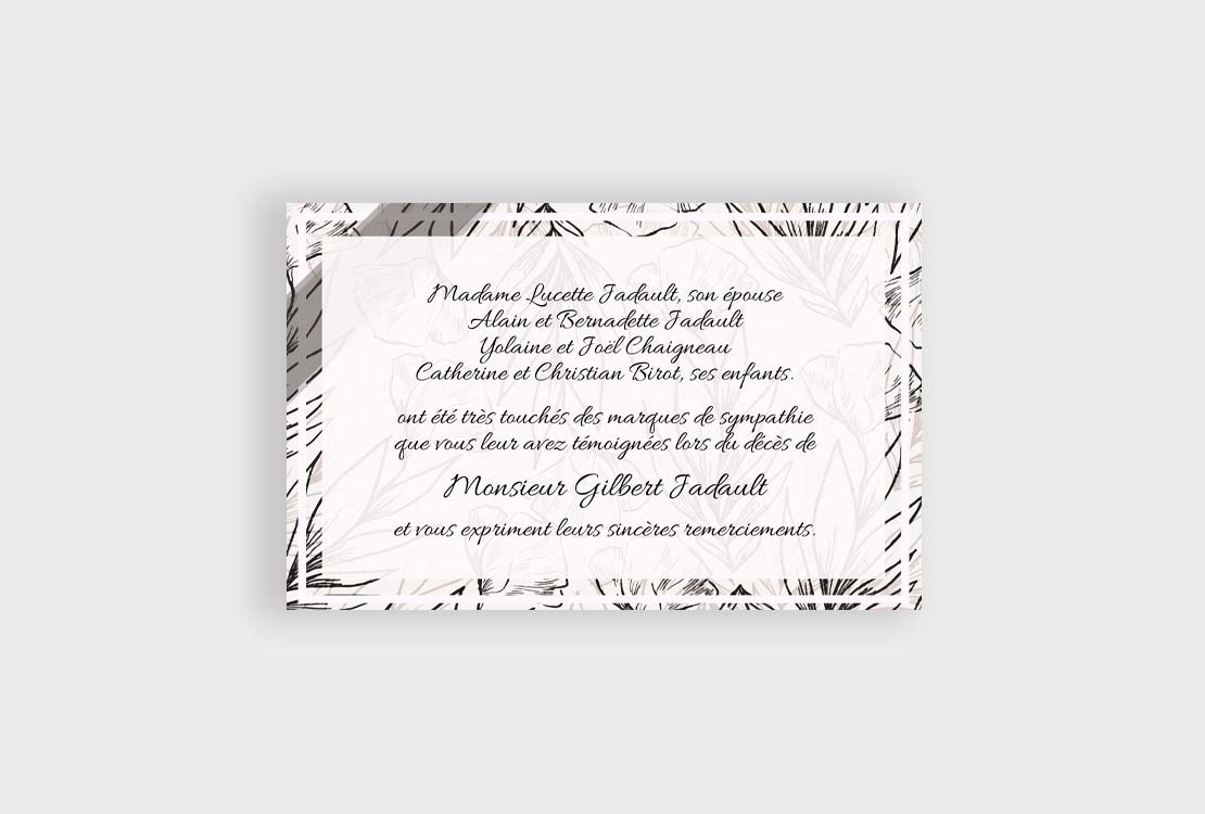 Tons beige/taupe pour cette carte de remerciements décès.