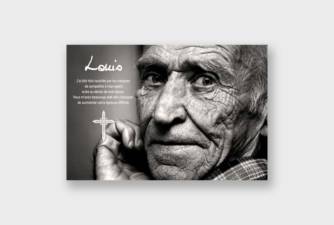 Avec cette carte de remerciement décès, mettez la plus belle photo du défunt ou de la défunte en avant.