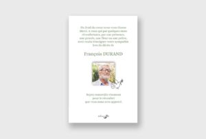 La carte de remerciements décès « Lettrine » est moderne. Au verso, vous pourrez insérer une petite photo du défunt dans un cadre carré accompagné d’une colombe.