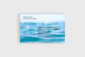 Sérénité et calme ressortent de cette carte de remerciement décès. Adaptée à une personne qui aimait particulièrement la mer…
