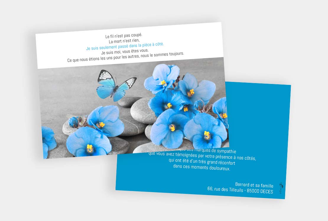 Textes recto et verso personnalisables. Jolie et moderne, cette carte de remerciements décès plaira certainement à vos destinataires.