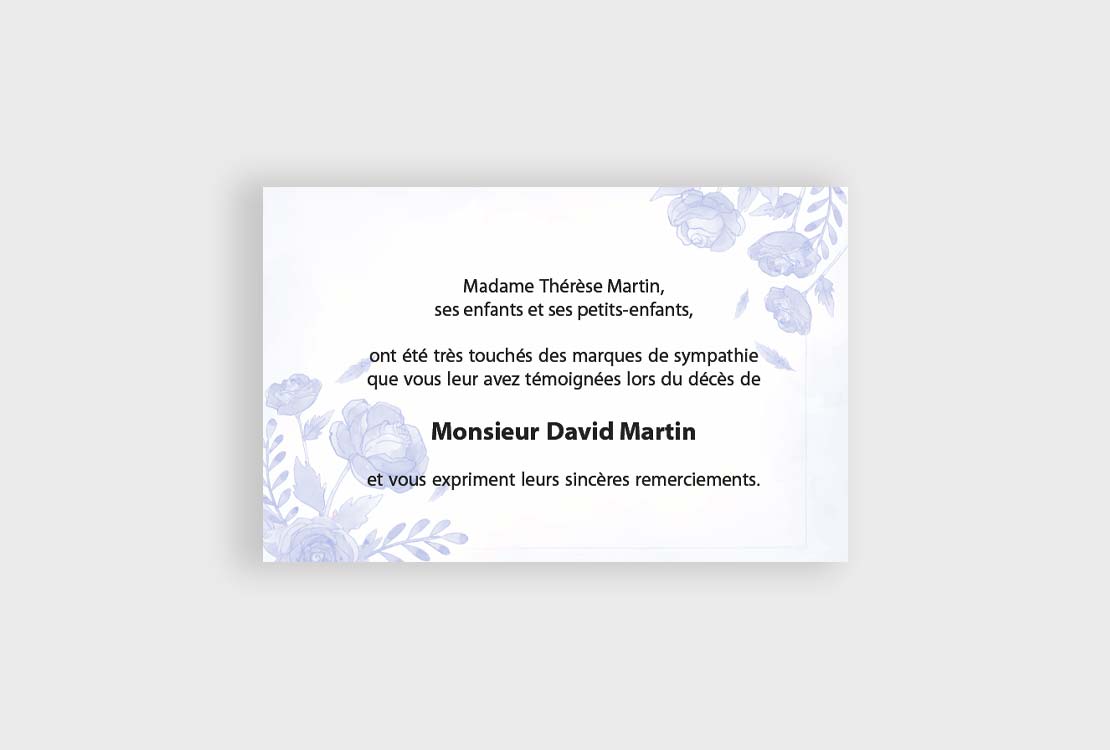 Aquarelle de roses bleues pour cette jolie carte de remerciements décès.