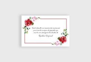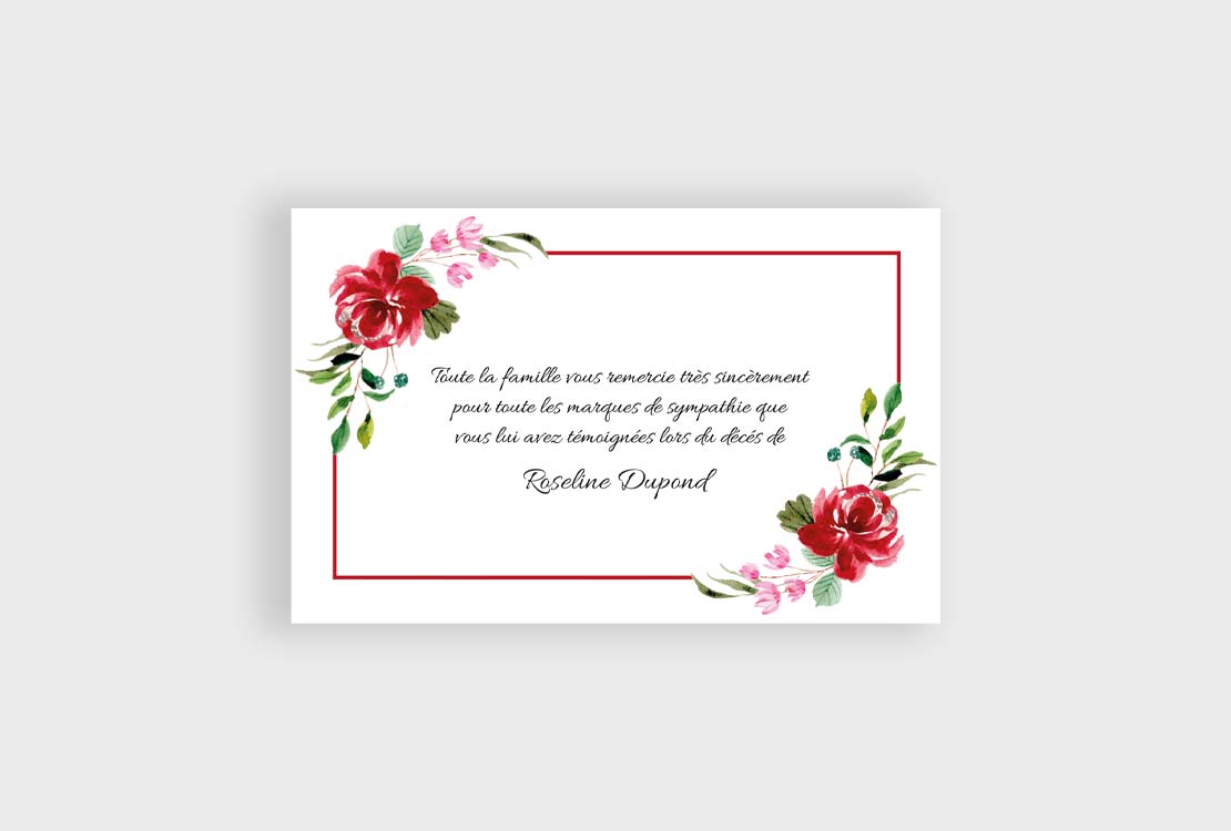 Très jolie carte ornée d’un cadre et de roses rouges.