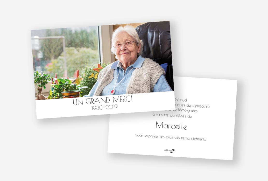 Cette carte de remerciement décès personnalisable, met en avant la personne qui vous a quittés.