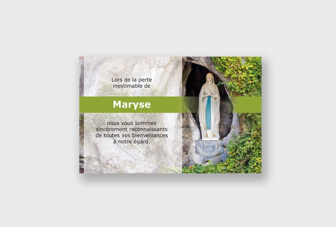 Cette carte de remerciements décès « Vierge Marie » est à caractère religieux.